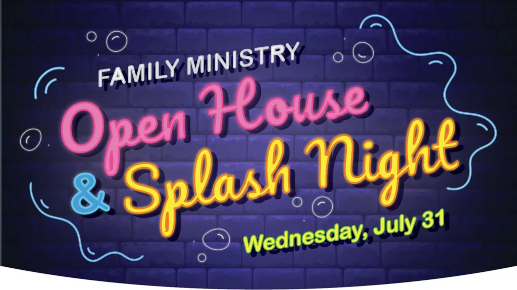 At Christ Church we believe that parents have a vital role in the discipleship of their kids. Our church and our families strive to work together to disciple students into faithful followers of Jesus. To that end we invite you to join us for our Family Ministry Open House and Splash Night on Wednesday, July 31 @ 6 – 8 p.m.